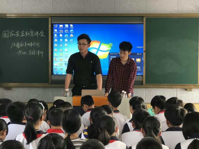 黃地為同學(xué)們講關(guān)于國(guó)家安全法的立法沿革,什么是國(guó)家安全,如何開(kāi)展國(guó)家安全工作,維護(hù)國(guó)家安全的任務(wù),公民、組織的義務(wù),中間黃地律師還對(duì)學(xué)生們提出問(wèn)題,學(xué)生們都熱情應(yīng)答。